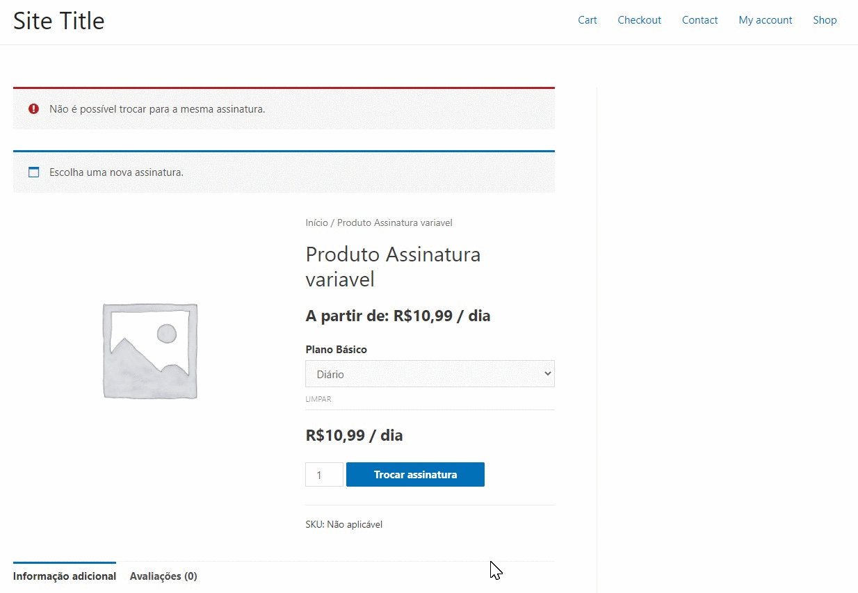 Quando inserido preço do produto ou assinatura com desconto, já será apresentado antes de inseri-lo no carrinho: