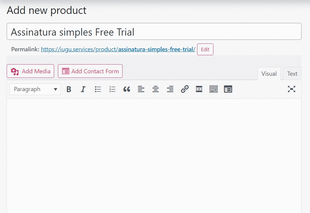 Atenção!Para a criação de produtos do tipo assinatura, é necessário ter instalado o plugin WooCommerce Subscriptions, conforme documentação de Configuração do plugin Woocommerce iugu.